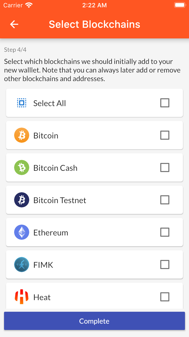 Finally we complete our wallet. You can choose to include all currencies or just the ones you select.