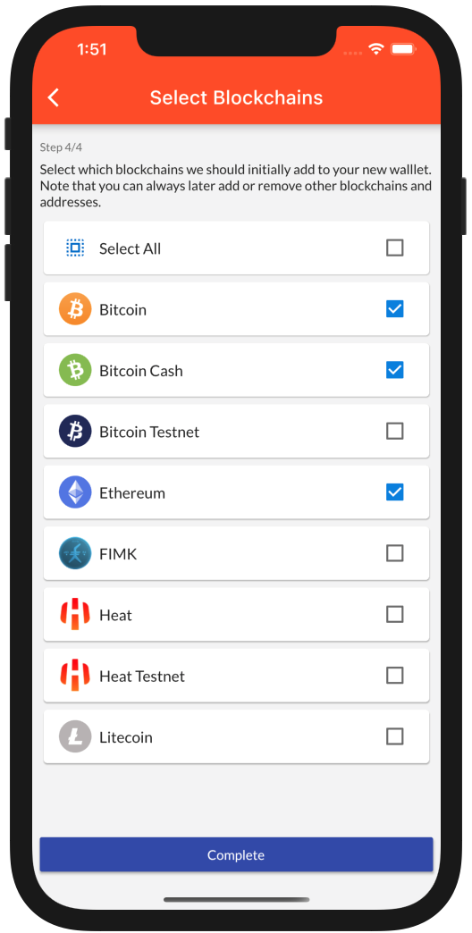You are asked to select which blockchains to add initially add to your wallet, you can always add more later.